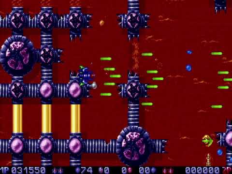 The game allows you to move in all directions while the screen scrolls from right to left. Your goal is to evade both bullets and moving enemies while taking out flying and stationary units. Power-ups can be gotten from random destructible scenery as well as destroyed opponents giving you better weapons, faster movement, etc.
